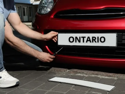 License plates stay with you, not the vehicle. Always remove them before pickup and reuse them or return them to ServiceOntario to avoid registration or liability issues later.